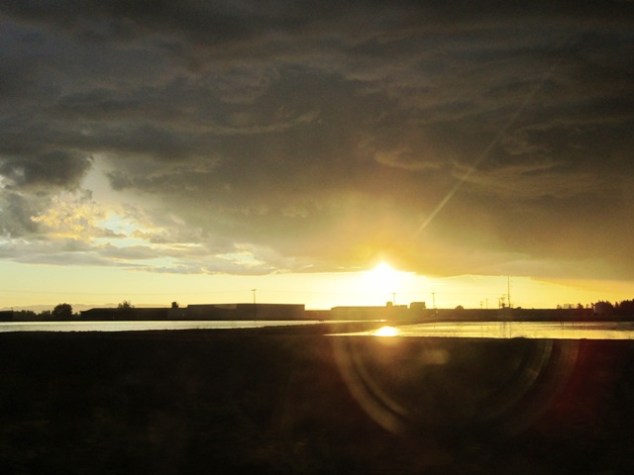 Blue of sky, grumbling floor, wide expanse of bridge and blur